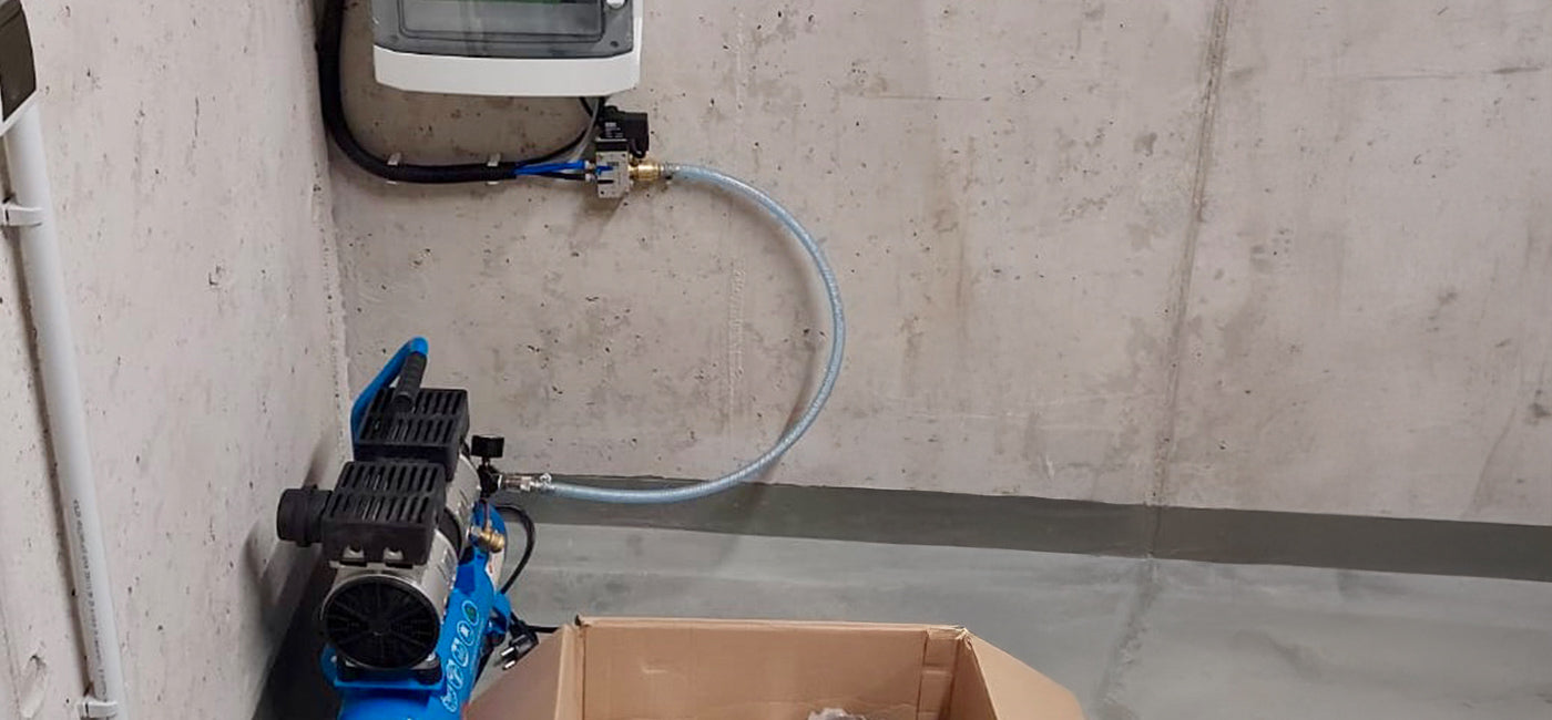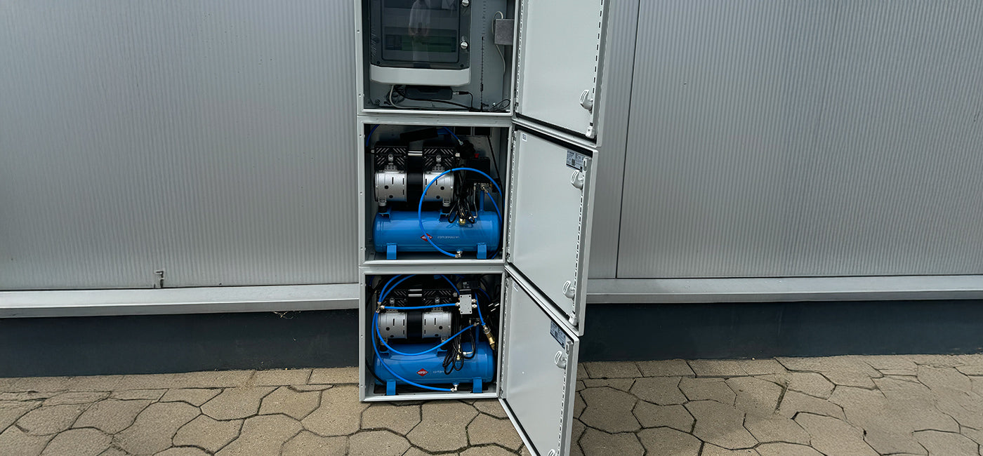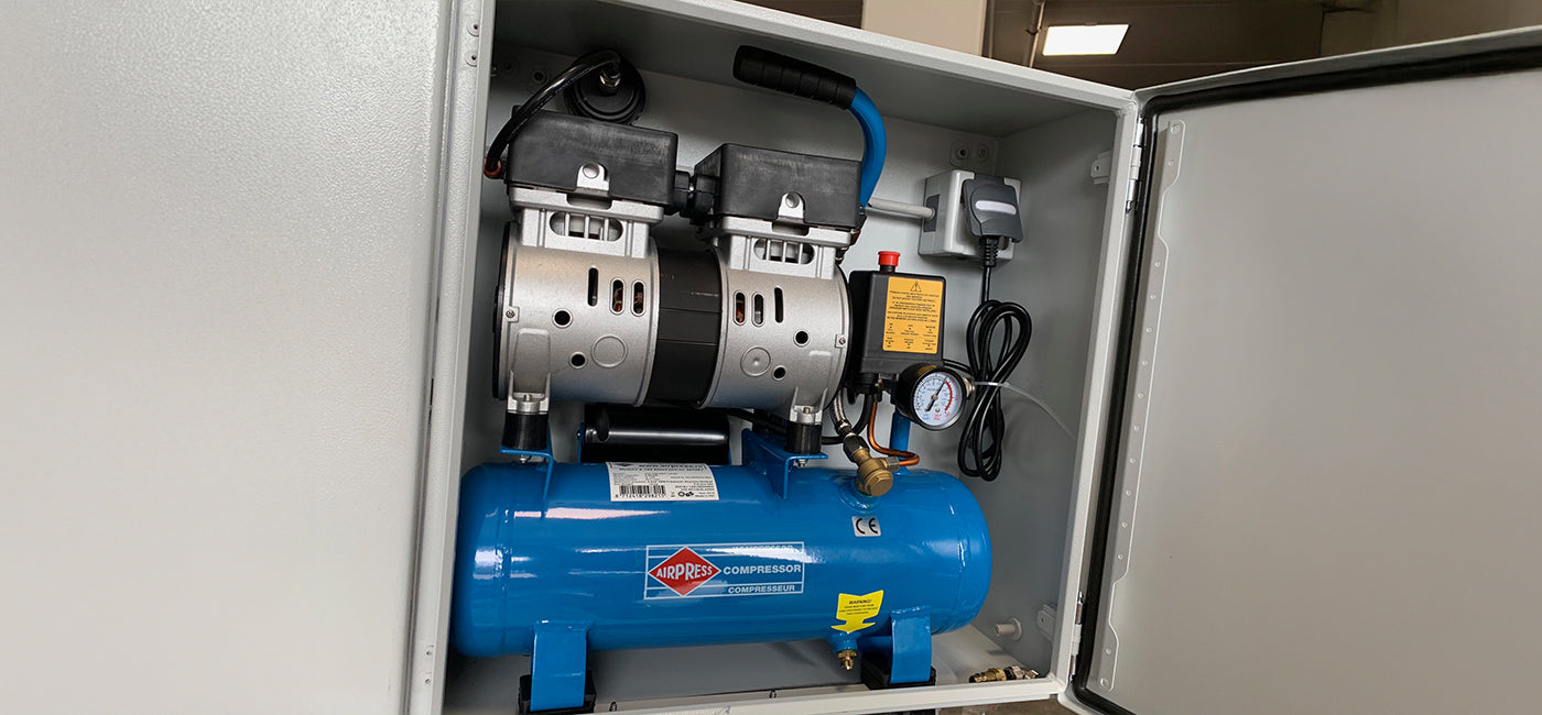 - Ventil + Leisekompressor befindet sich im Haus, gut erreichbar, leicht von Laien zu tauschen